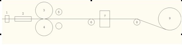 唐山市豐潤區(qū)玄龍鋼鐵有限公司鋁連鑄連軋機的主要工作是將經(jīng)原爐熔煉、靜止爐精煉后的高溫鋼液在快速冷卻的同時軋制成鋼板,最終通過卷取機卷成鋼卷。該設(shè)備主要有主軋機、鋼液位控制裝置、鈦絲進給、鑄嘴小車、石墨噴涂及行走、平動液壓剪、卷取機、卸卷車等,如圖所示。