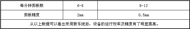 現(xiàn)場運行結(jié)果表明運用新系統(tǒng)以后,設(shè)備的精度與效率明顯提高,下表是以2m卷板為例所得到的數(shù)據(jù)對比: